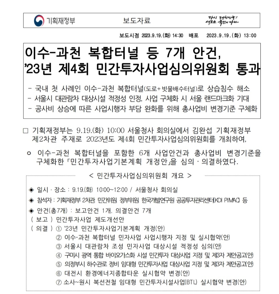 2023. 09. 제4회 기획재정부 민간투자사업심의위원회 심의 의결