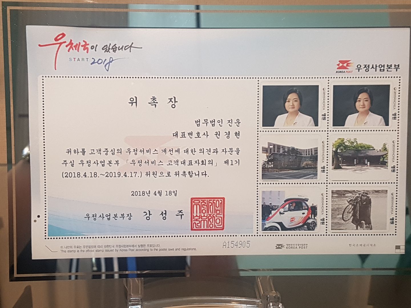 2018. 04. 법무법인 진운 권경현 대표변호사가 우정사업본부 우정서비스 고객대표자 회의 위원으로 위촉되었습니다. 우편, 물류, 금융 보험의 우정서비스 전반에 대한 우정서비스 고객대표로서 고객대표자 회의에 참여해 의견을 개진하여 우정서비스 발전을 위해 노력하도록 하겠습니다.
