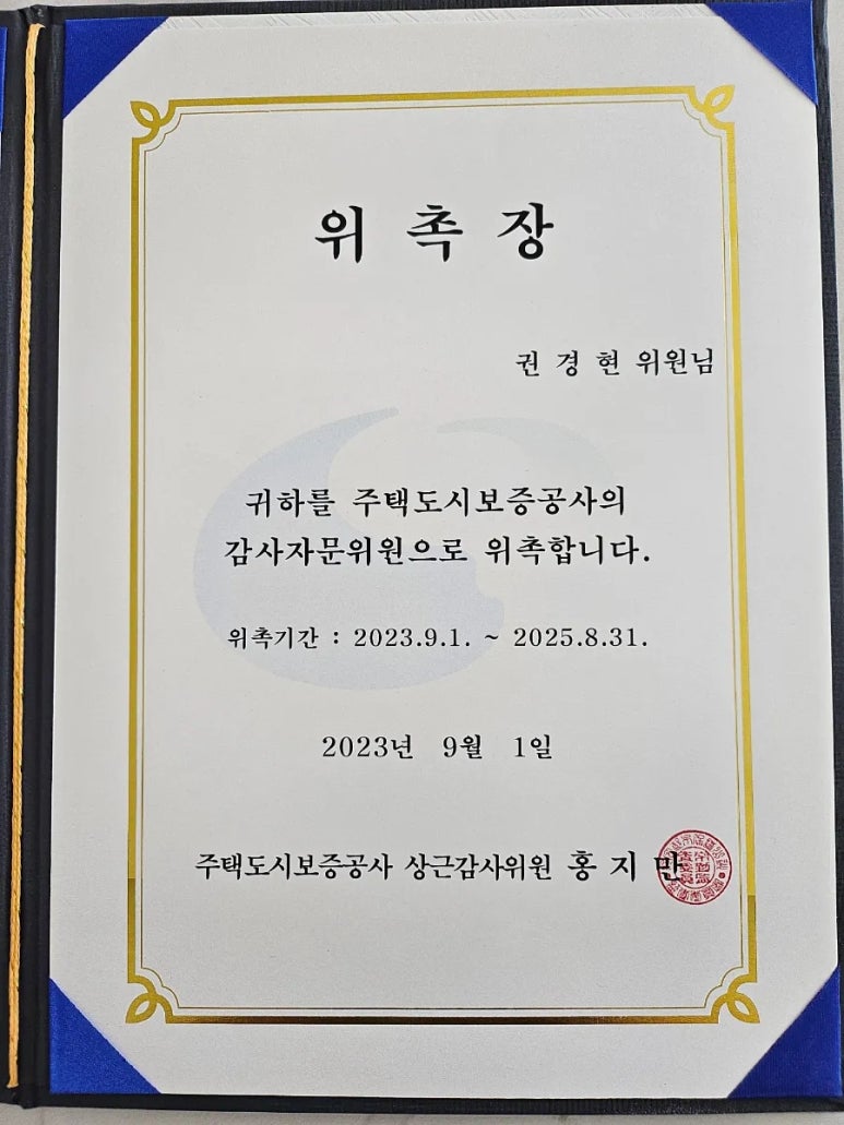 2023. 09. 주택도시보증공사(HUG) 감사자문위원 위촉