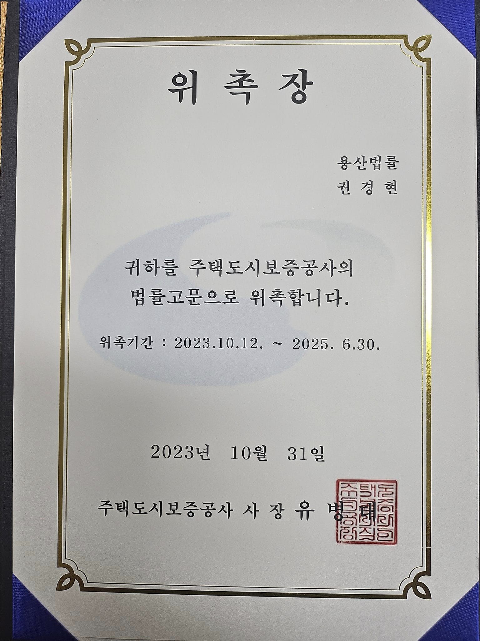 2023. 10. 주택도시보증공사 법률고문 위촉