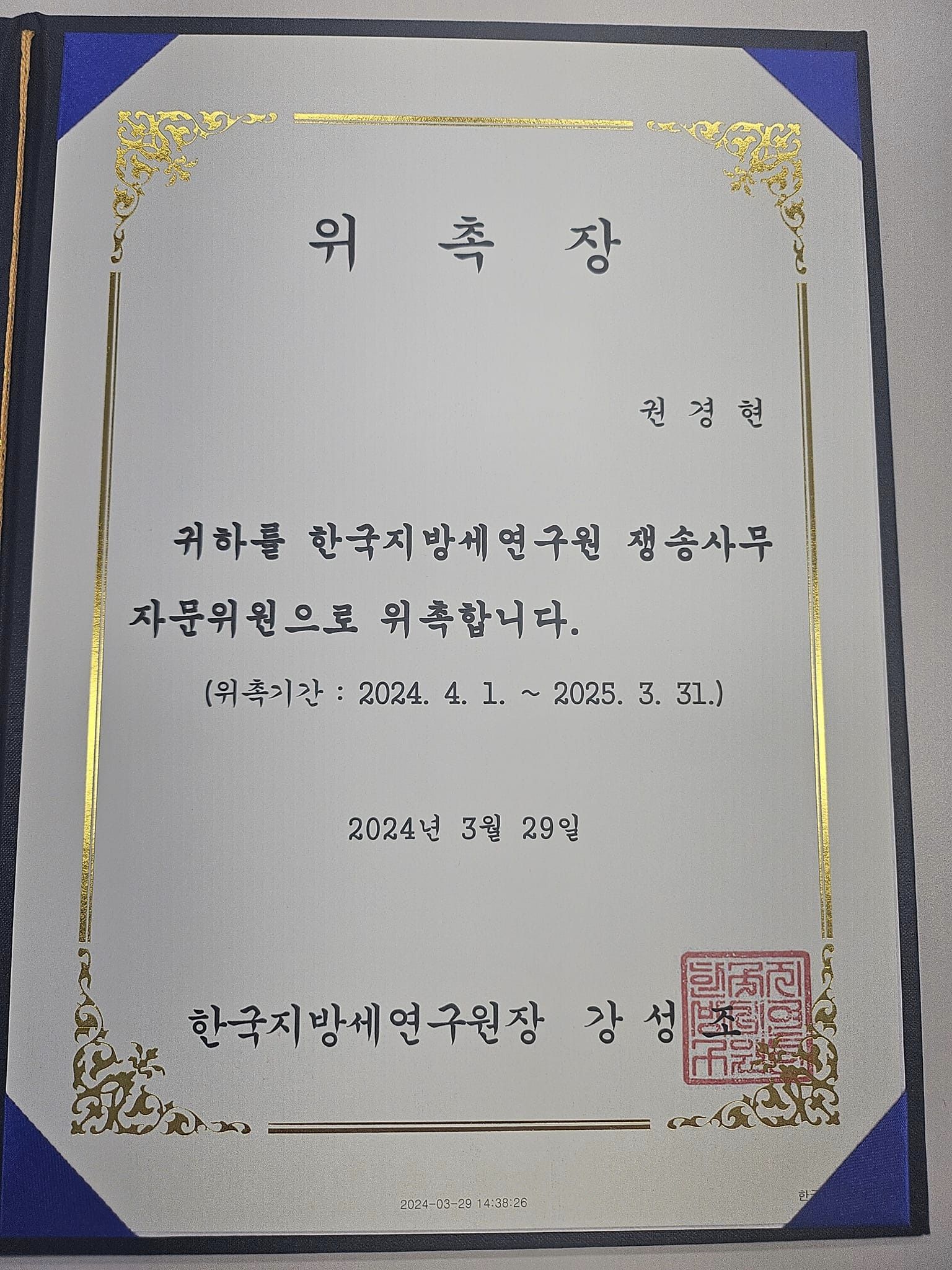 2024. 03. 한국지방세연구원 쟁송사무 자문위원