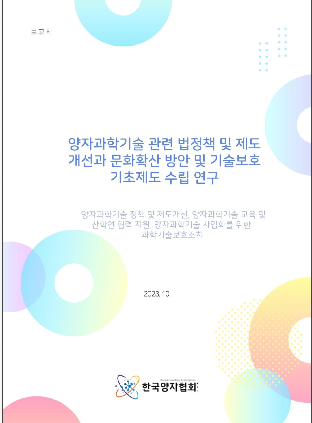 양자과학기술 관련 법정책 및 제도개선과 문화확산 방안 및 기술보호 기초제도 수립 연구 (2023)
