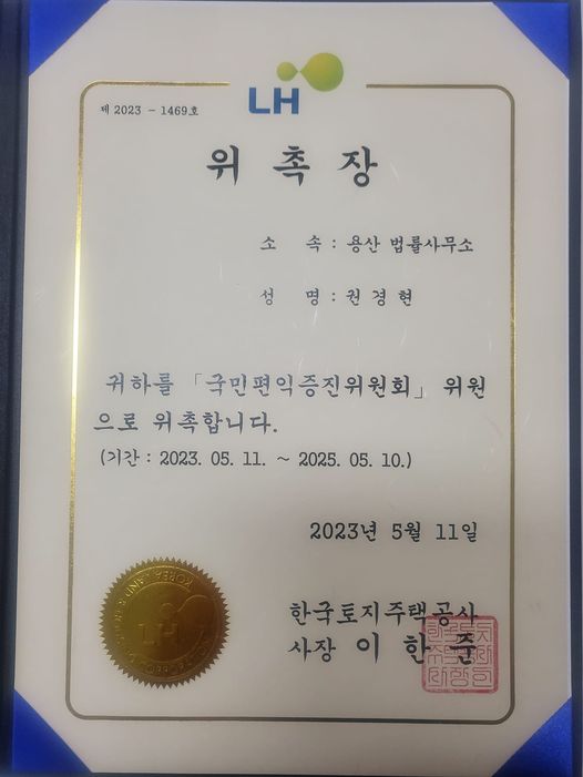 Çѱ¹ÅäÁöÁÖÅðø»ç ±¹¹ÎÆíÀÍÁõÁøÀ§¿øÈ¸ À§¿øÀ¸·Î À§Ã˵Ǿú½À´Ï´Ù.