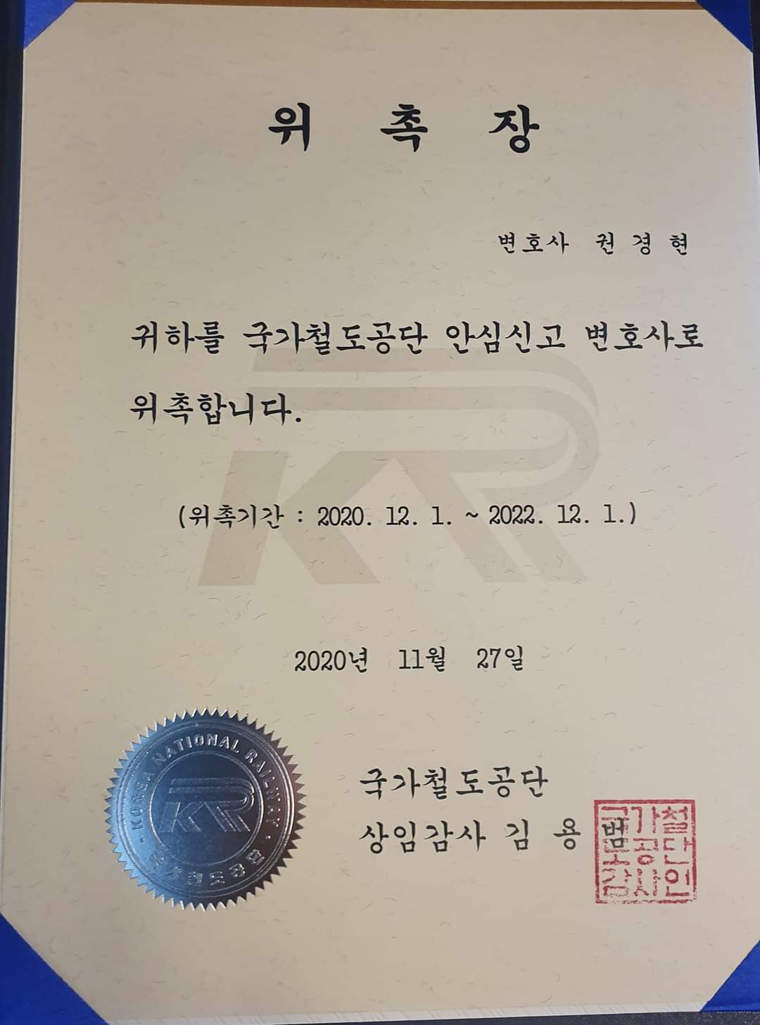 ±Ç°æÇö ´ëÇ¥º¯È£»ç°¡ ±¹°¡Ã¶µµ°ø´Ü ¾È½É½Å°í º¯È£»ç·Î À§Ã˵Ǿú½À´Ï´Ù.